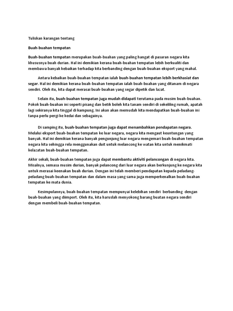 Esai berisikan ekspresi dan opini seseorang tentang suatu hal oleh karena itu esai berbeda dengan artikel ilmiah atau opini yang bersifat laporan factual. 10 jenis buah buahan untuk kulit menawan free malaysia penulisan karangan spm isu buah buahan tempatan. Contoh karangan eksposisi tentang lingkungan. Segar, enak dan berkhasiat oleh : Karangan mari mengenal buah buahan.